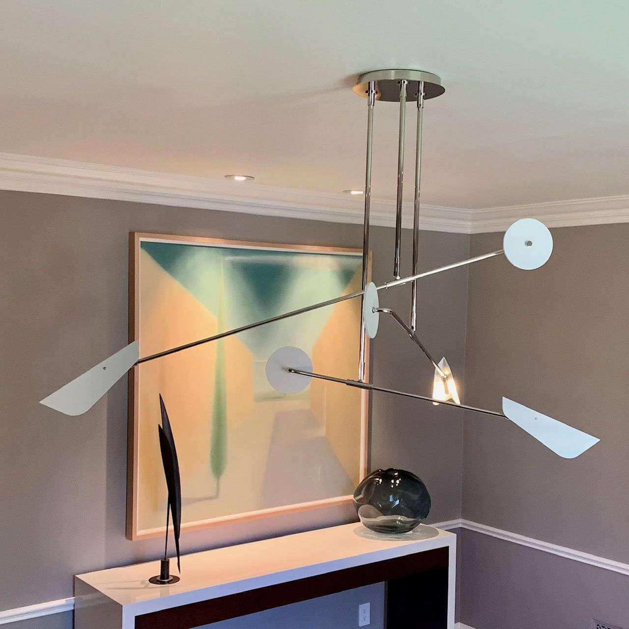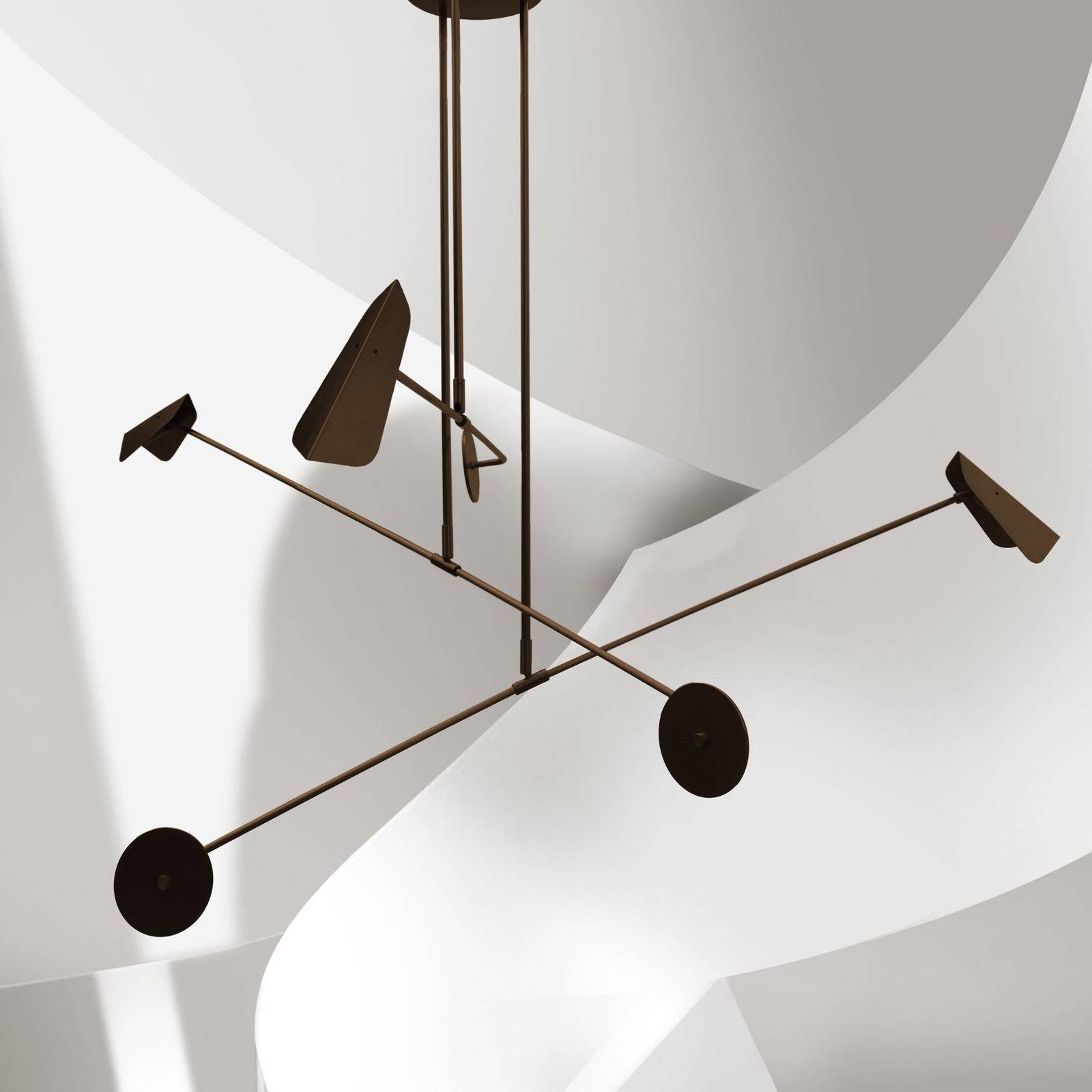 The graphic shapes created by the Birdie, bring a delicate drama to everything from intimate dining tables to grand entrances and rooms. The Birdie Chandelier celebrates the fun and beauty of poetic modernism and the lasting inspiration of Alexander Calder's playful sculptures.