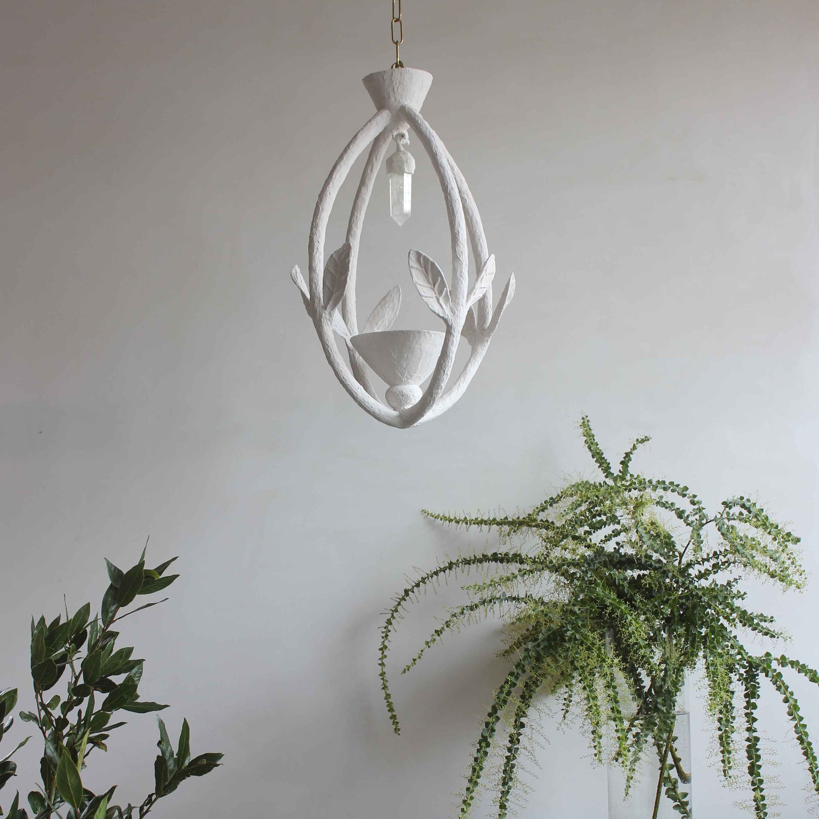 The Amberley Lantern is a new hand crafted plaster pendant light with a rich natural texture and four abstract sculpted leaves decorating the simple droplet inspired form. The Amberley showcases Martin's distinctive hand sculpted style, as he interweaves references to the classical English lantern with the beauty of the natural world and crafted modernity.